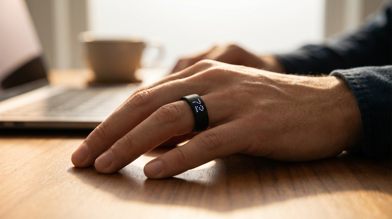 The first smart ring with a built-in LED display and AI health coach. See your heart rate, steps, and sleep score right on the ring — no phone needed. AI learns your baselines and tells you what your data actually means.